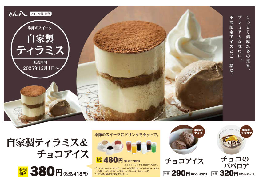 【12/1〜】季節のスイーツ「自家製ティラミス」が登場!